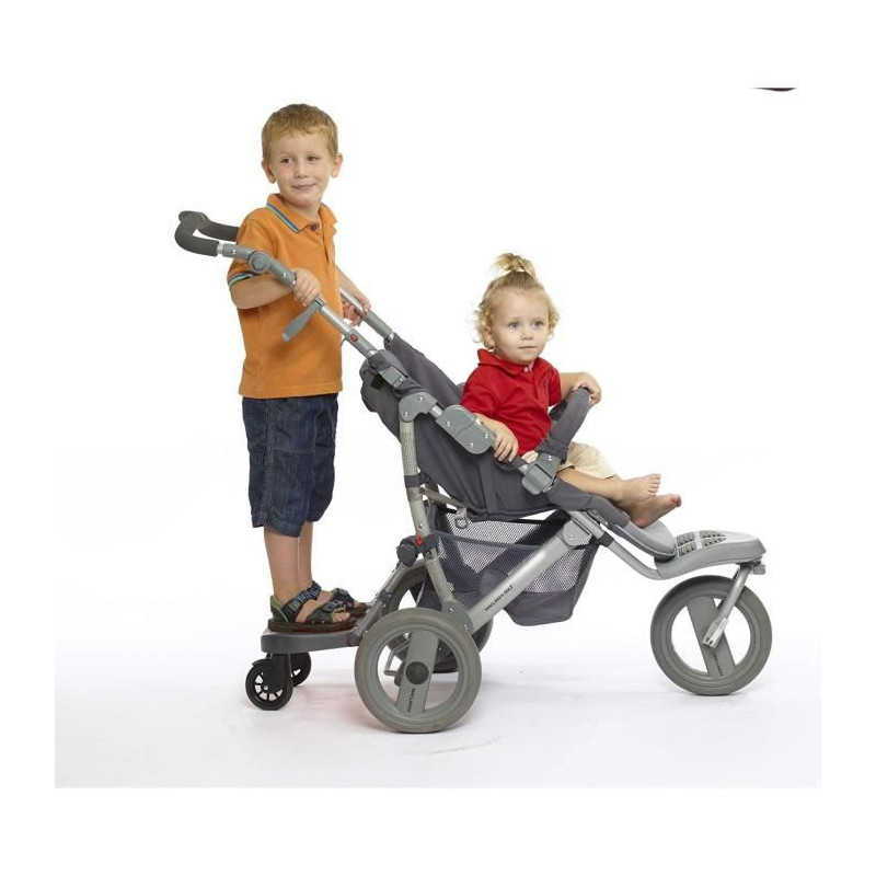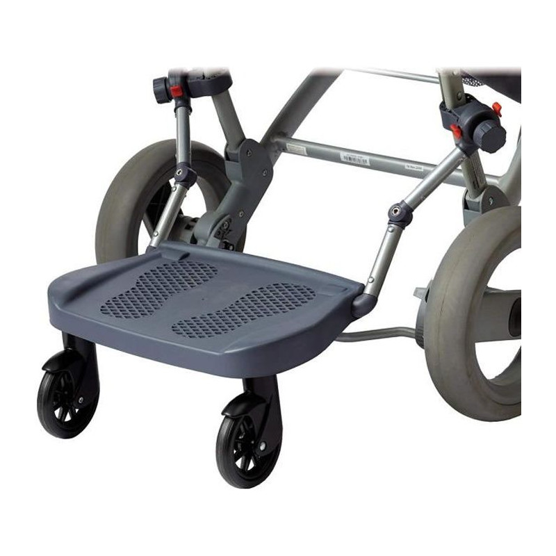TIGEX Marche pour Poussette EZ STEP La marche pour poussette TIGEX a été conçue pour transporter un deuxieme enfant en position debout. Elle a été spécialement conçue pour s'adapter a la plupart des poussettes et landaus. Les fixations restent sur la poussette pour faciliter le pliage.