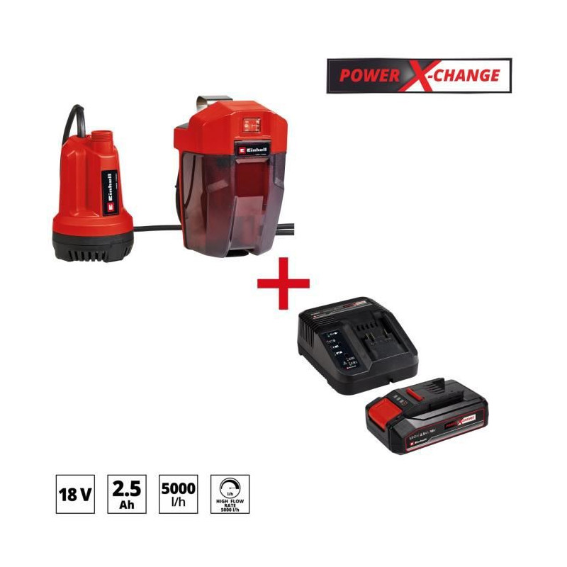 Pompe Evacuation eau claire GE-SP 18 Li + Starter Kit 2,5Ah - Power X-Change