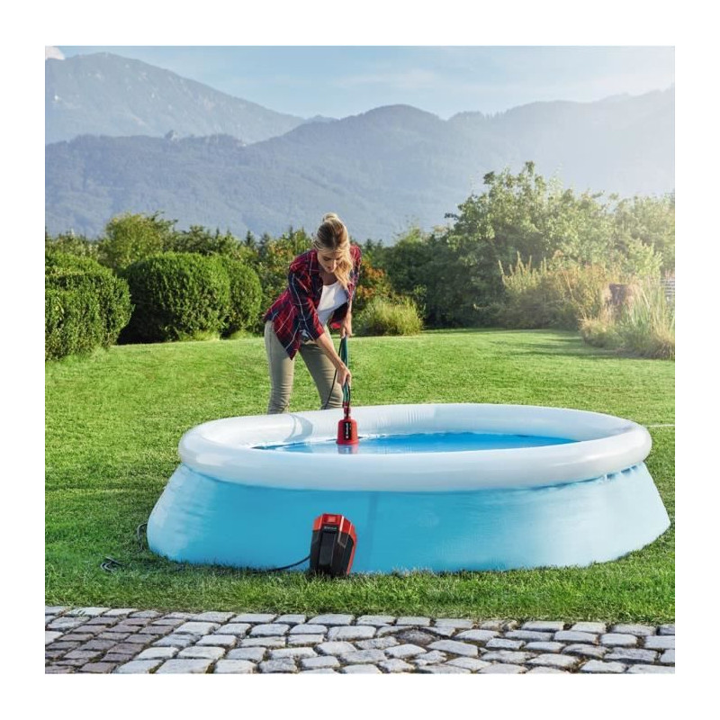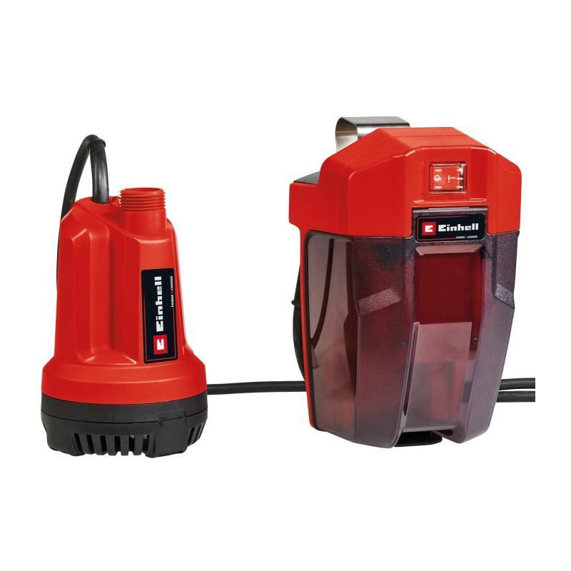 Pompe Evacuation eau claire sans fil GE-SP 18 Li Power X-Change - 18V - Livré avec Chargeur et Batterie 2,5Ah - Débit max 5000 L/h- Pression Max 0,8 Bar - Hauteur de refoulement 8 m - Profondeur immersion 4m - Diametre max de particules aspirées 2,5mm - Raccord tuyau 33,3mm - Crochet de fixation bloc batterie