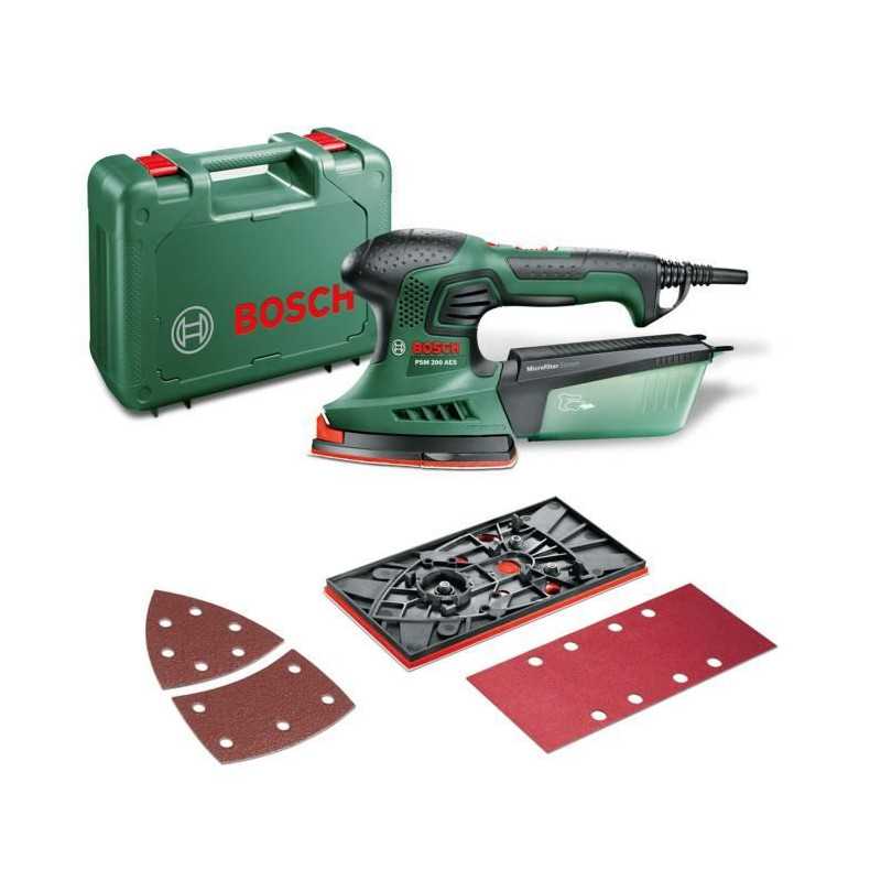 Ponceuse Multi Bosch - PSM 200 AES (Livrée avec 2 feuilles abrasives, Plateau de Ponçage et Coffret)