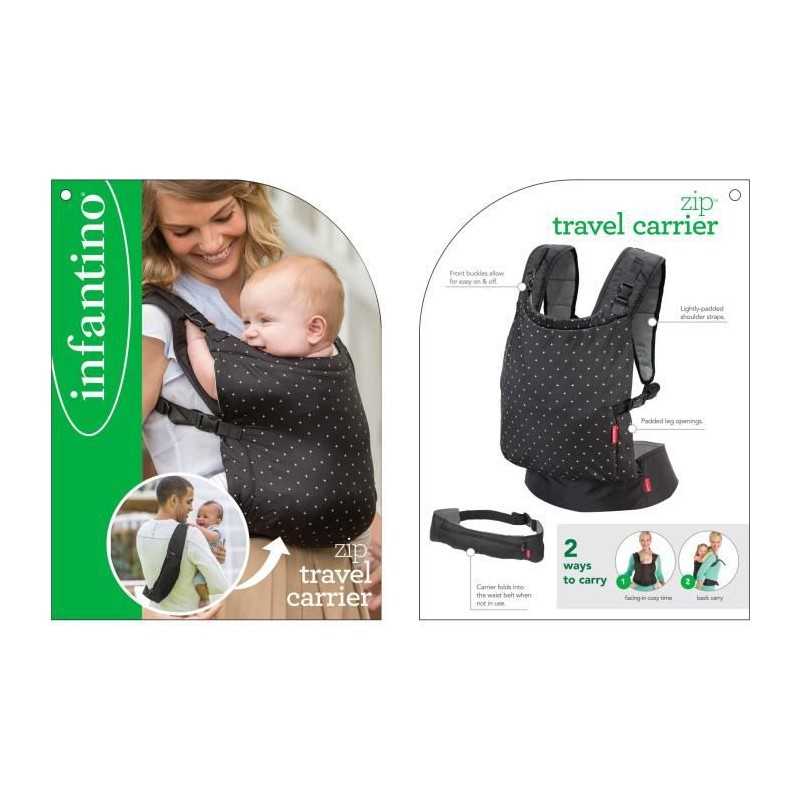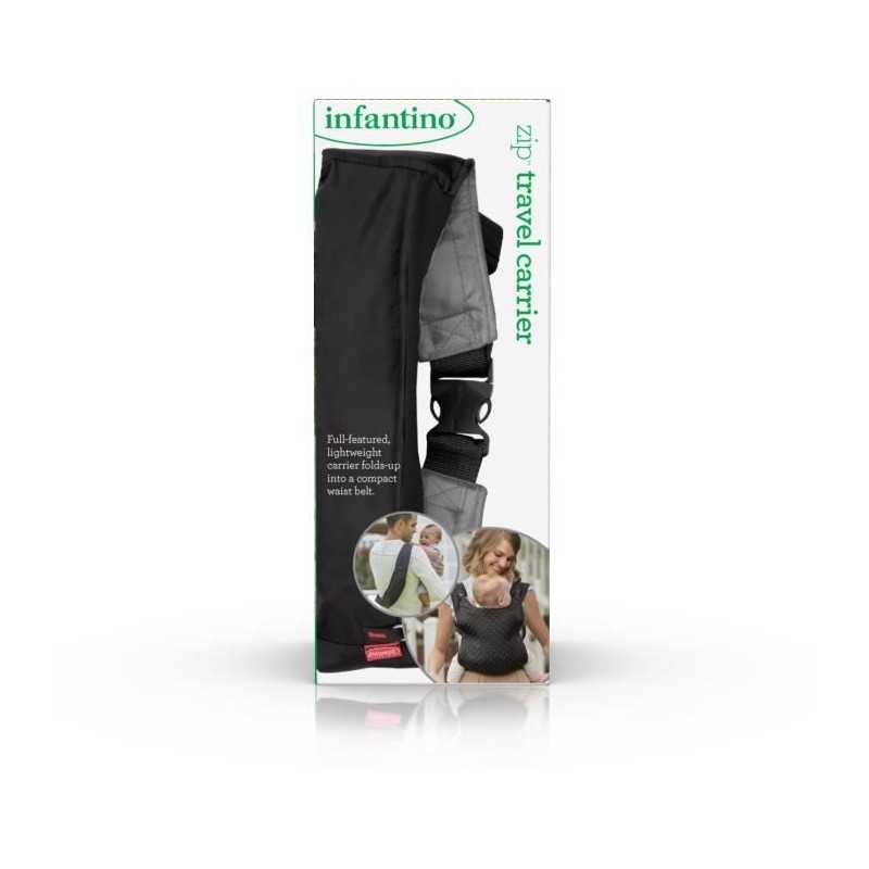 INFANTINO Porte-bébé banane zip travel Un porte-bébé bien pratique qui ne prend pas de place dans les bagages qui se plie et se déplie en quelques secondes, grâce a sa pochette banane que l'on peut ensuite porter a la taille si on le souhaite. Ce porte-bébé a une légereté impressionnante et est tres résistant pour supporter le poids de bébé jusqu'a 18 kg.