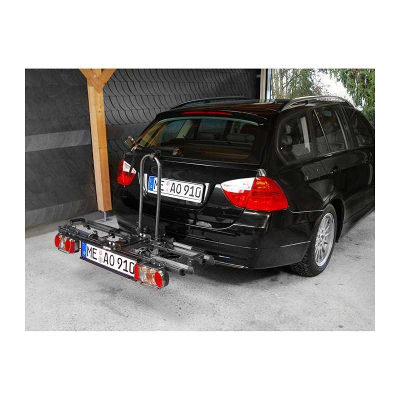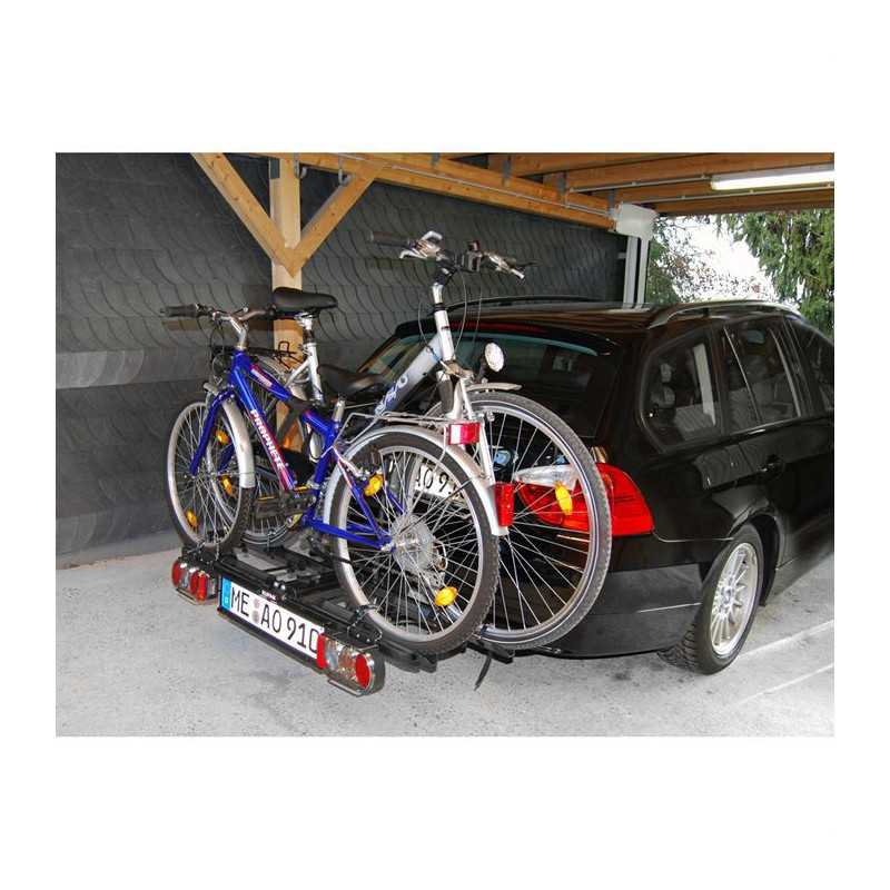 Porte-vélos sur attelage - 2 vélos - En acier - Pliable - Rabattable pour accéder au coffre - Feux 5 chambres complet - Vendu a l'unité