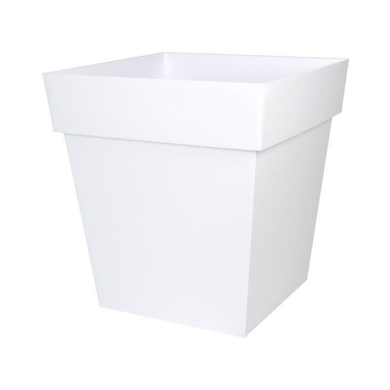 Ce pot de fleurs carré TOSCANE 50 cm EDA - Blanc - Certifié Origine France Garantie - Traité anti-UV et résistant au gel - Accueillera vos plantes pour aménager votre intérieur et votre extérieur, jardin ou terrasse - Pré-percé avec une zone de rétention d'eau - Garanti 5 ans.