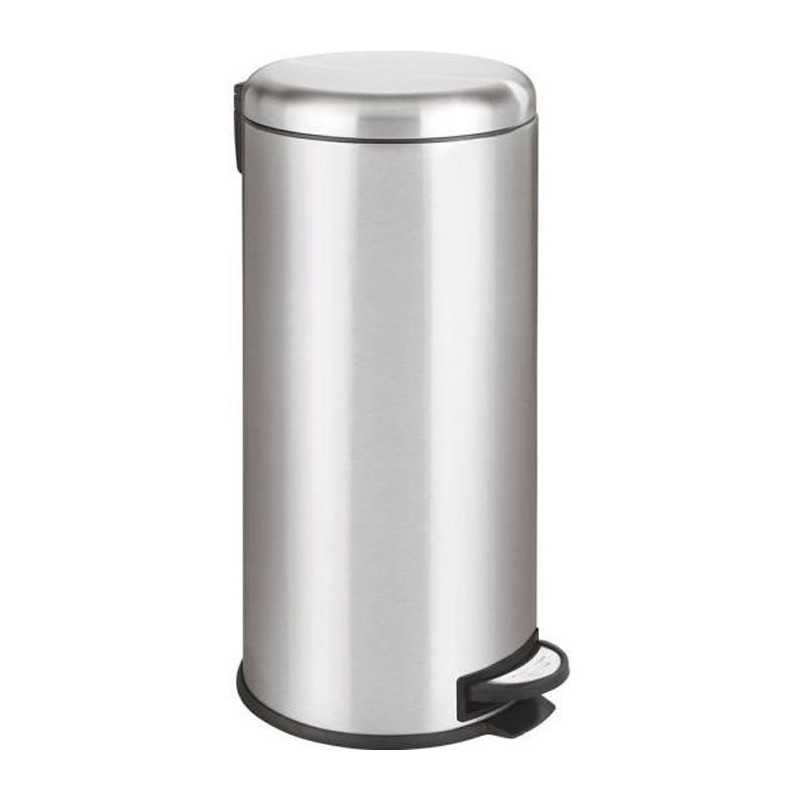 Poubelle de cuisine a pédale ronde avec seau Capacité 30L modele URBAN en acier Inoxydable Inox brossé Dimension: Ø29xH66cm Poids:3kg Corps et couvercle en acier INOX (0.4mm) Inclus: Un seau amovible avec anse pour maintenir votre sac poubelle, et un anneau au sol pour la protection des sols fragiles. Poubelle avec pédale au pied manuelle. Matériaux robustes. Mécanisme de pédale solide. Tres simple d'utilisation. Fer