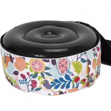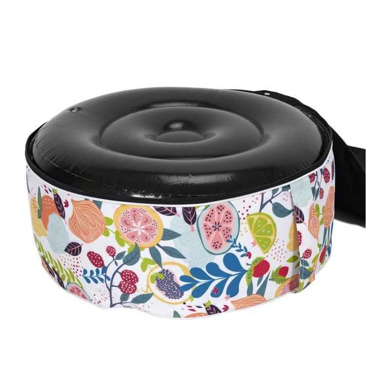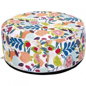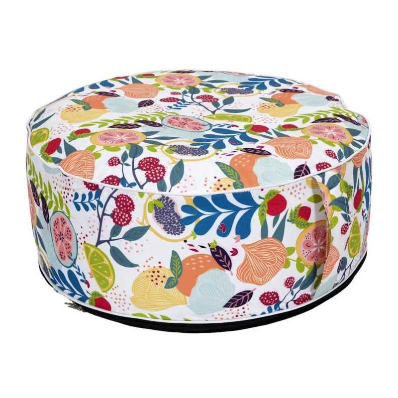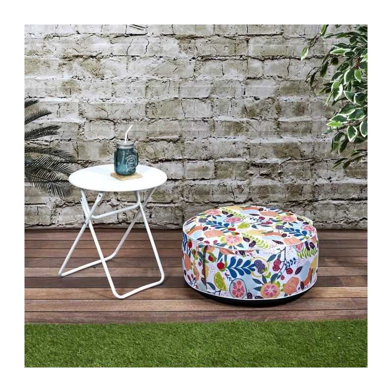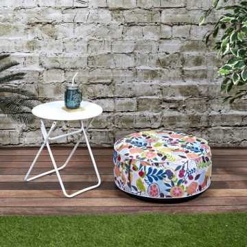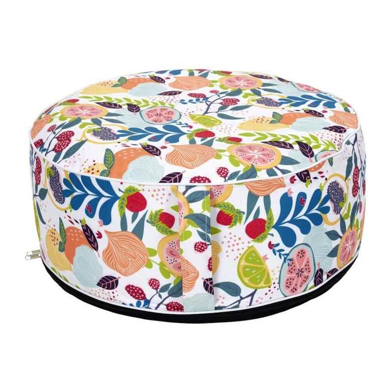 Pouf gonflable Peps - Rond composition textile - Blanc et multicolore - 55 x 55 x 25 cm - HOME DECO FACTORY