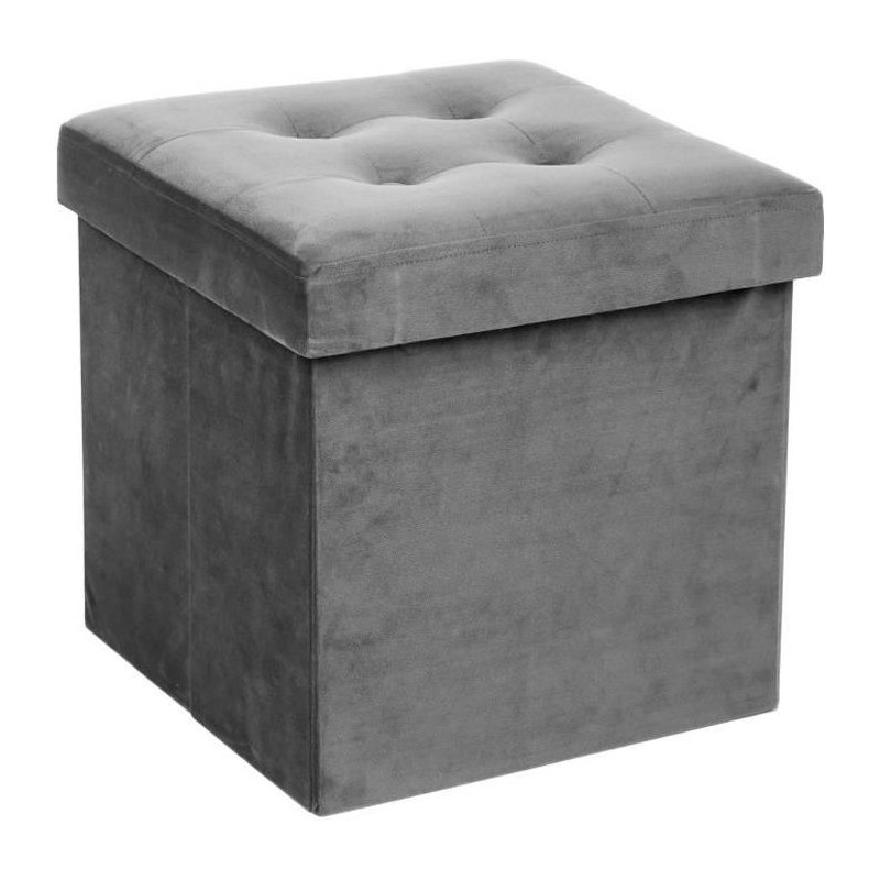 Pouf pliable Lysandre en velours - Gris - L 37,5 x P 37,5 x H 38,3 cm