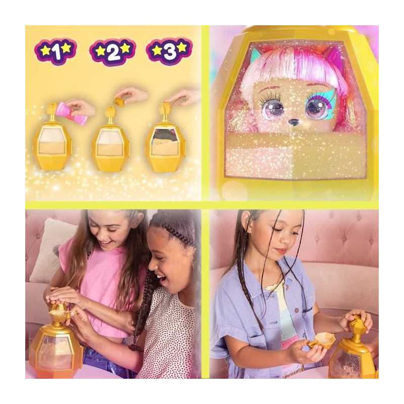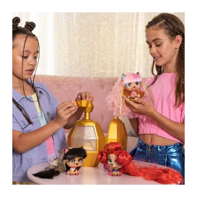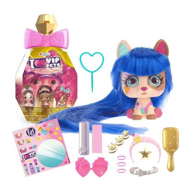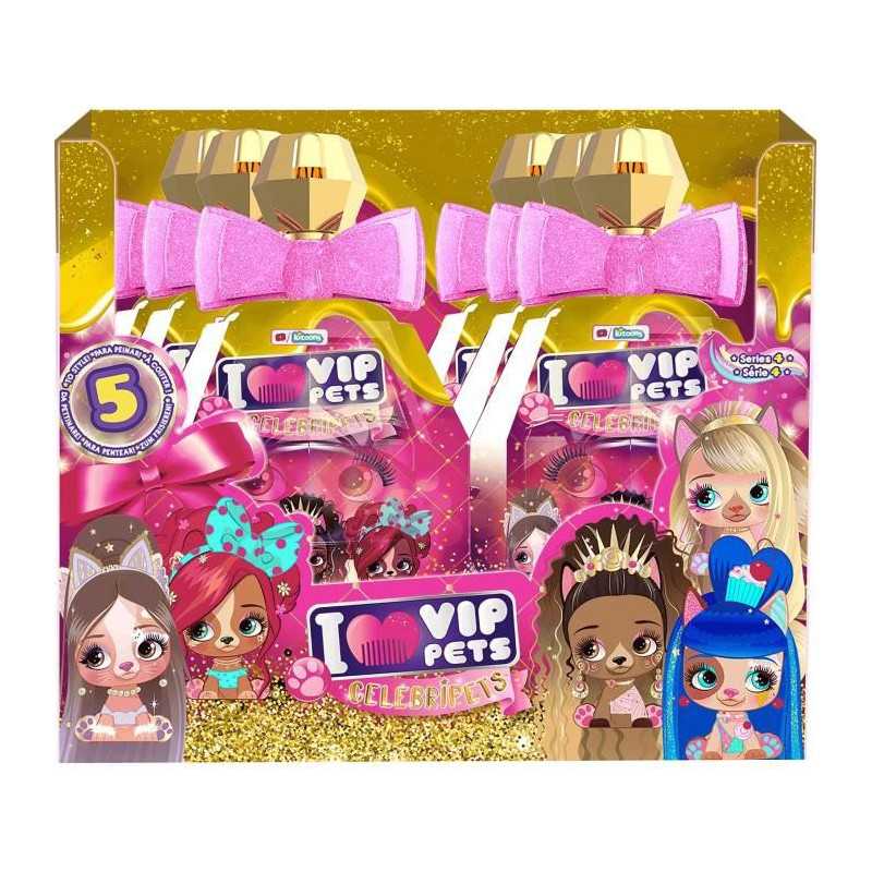 Collection premium de 5 VIP Pets aux cheveux encore plus longs de 35 cm et au regard plus réaliste, inspirés de stars mondialement célebres! Presse sur le flacon et découvre ton Celebripets! 5 personnages exclusifs a collectionner, 12 surprises pour la coiffer.