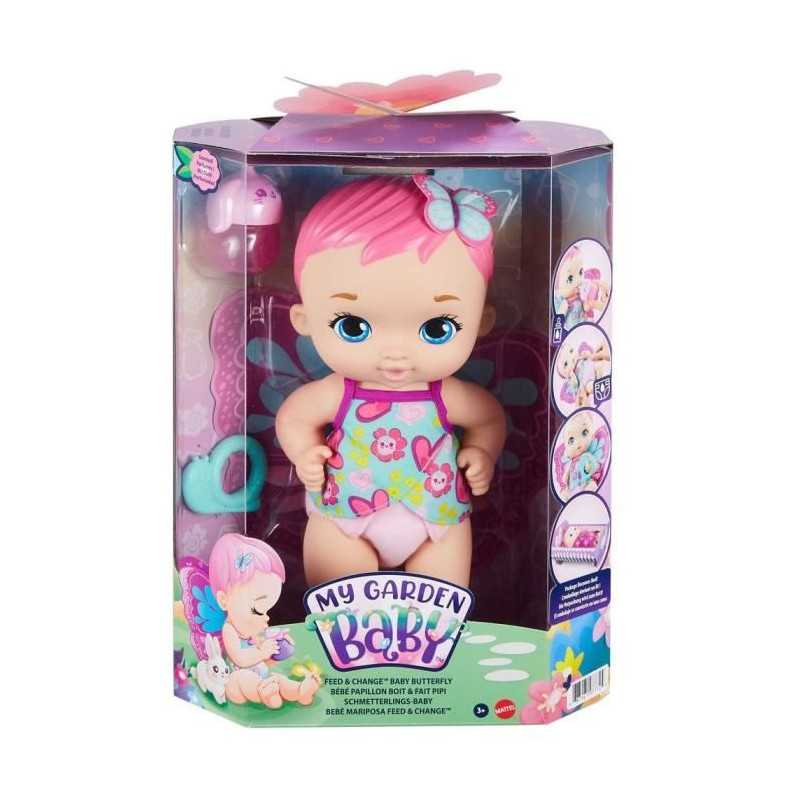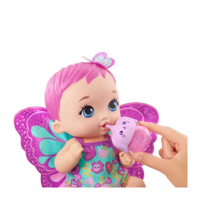 My Garden Baby - Bébé Papillon Rose Boit et Fait Pipi 30 cm, couche réutilisable, tenue, ailes amovibles - Poupon - Des 2 ans