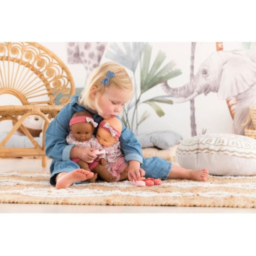 Grand poupon de 36cm. Corps souple. Tient assis. Yeux dormeurs. Senteur de vanille. Des 2 ans.