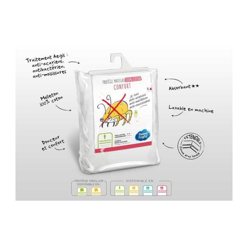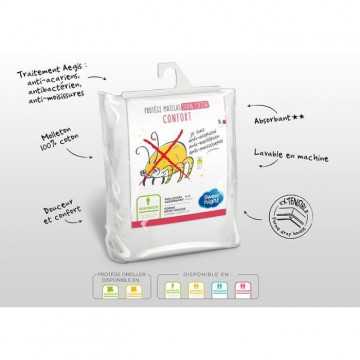 100% coton, 170 gr/m² - Traitement anti-acariens, anti bactérien, anti-moisissures, traitement testé en laboratoire, totalement inoffensif pour l'homme et son environnement. Reste efficace meme apres de nombreux lavages - Molleton confortable, doux et absorbant - Convient aussi aux matelas épais extensible jusqu'a 37 cm