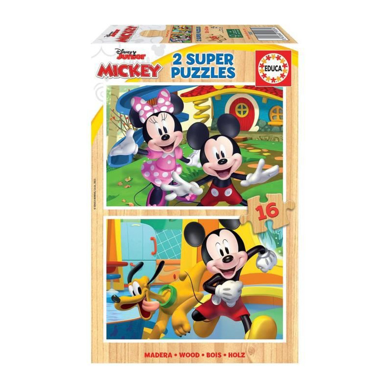 2x16 MICKEY & MINNIE - 2 puzzles de 16 pieces haute qualité en bois. - De grandes pieces en bois, parfaitement finies, faciles r manipuler et r assembler. - Des images plus attractives aux couleurs brillantes, rehaussées par une couche de vernis.