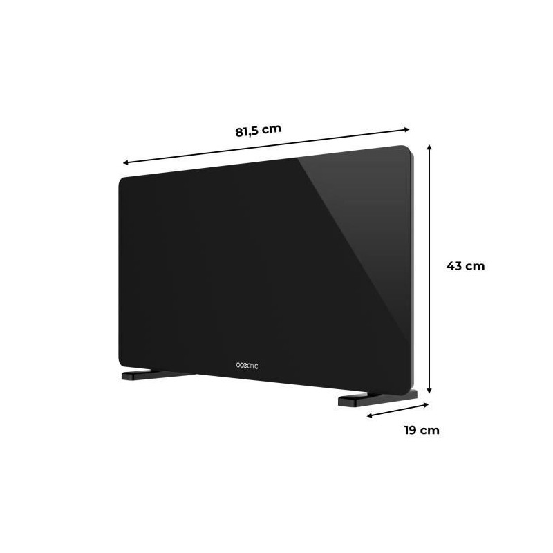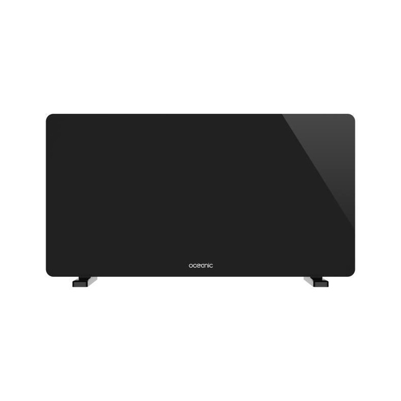 Oceanic Radiateur convecteur mobile électrique - Puissance de chauffe: 2000 W - Façade en verre noir - Thermostat électronique - Affichage digital LED - Témoin lumineux de fonctionnement - Programmation personnalisable : quotidienne et hebdomadaire - Détection de fenetres ouvertes - Minuterie 24 heures