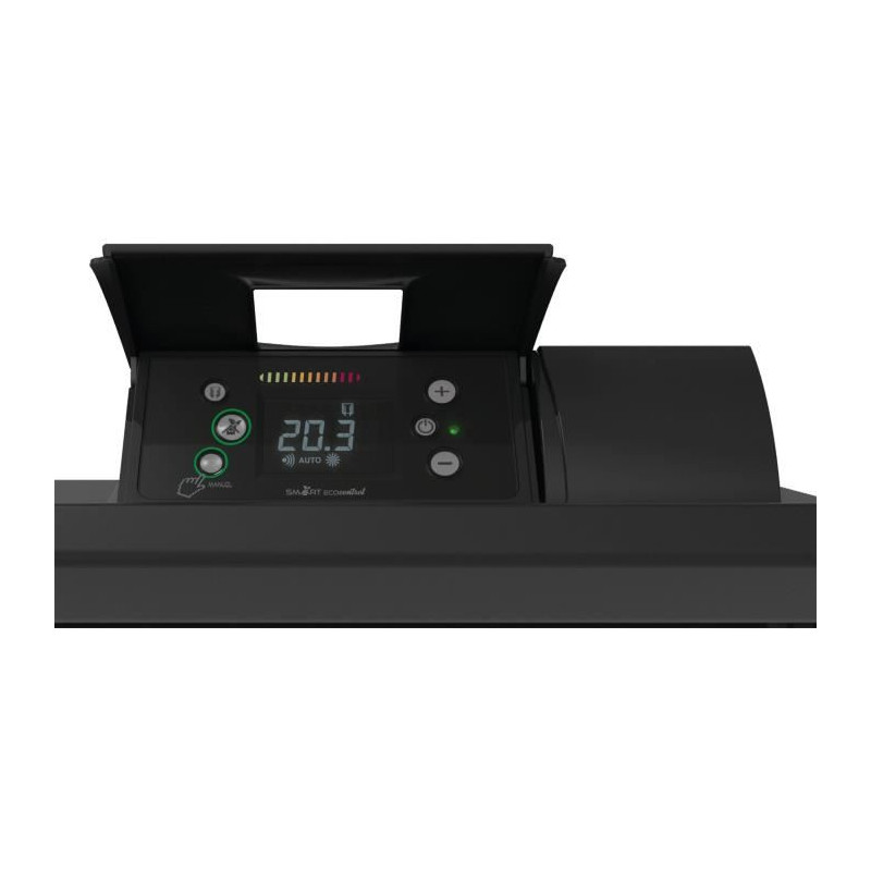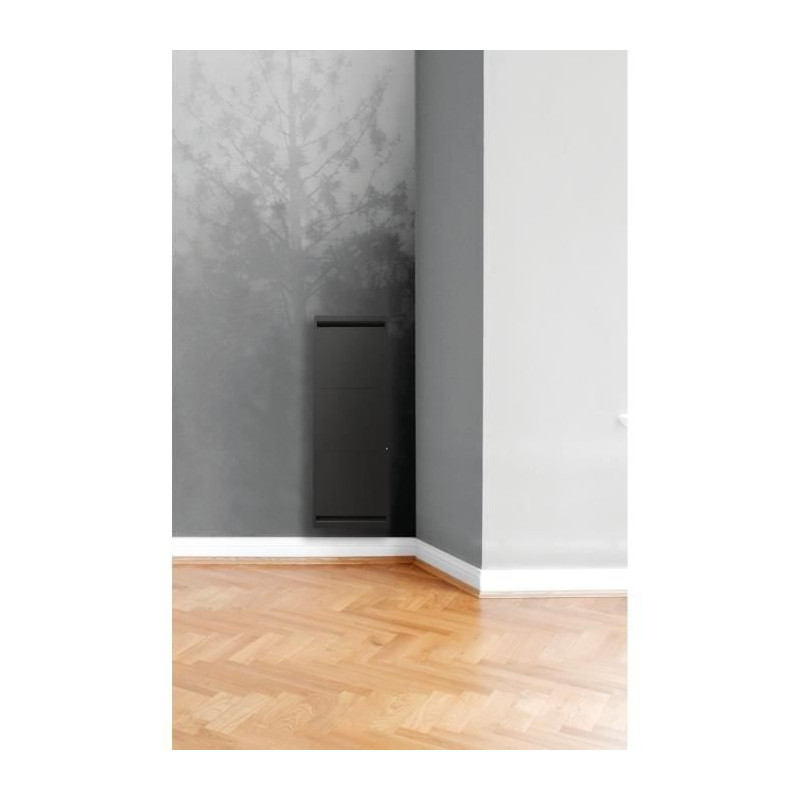 AIRELEC AIRVO modele Vertical 1000 Watts - Radiateur électrique Chaleur Douce - Coloris gris anthracite - Carrosserie acier - Peinture époxy polyester polymérisé - 2 corps de chauffe Fonte active et façade rayonnante - Programmation libre - Connectable en option avec module Muller Intuitiv With Netatmo - Détection de fenetre ouverte - Détection de présence / absence - Fil pilote 6 ordres - Origine France Garantie