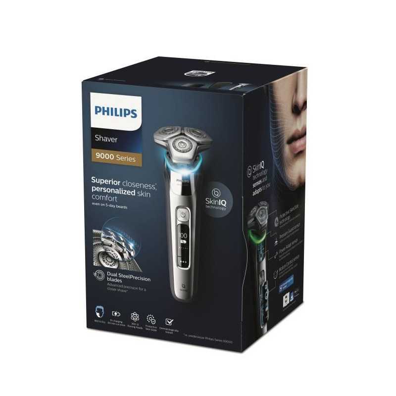 Rasoir PHILIPS Series 9000 S9985/35, Wet&Dry, Lames Dual SteelPrecision, Capteur de densité de barbe, Capteur de mouvement, Capteur de Pression, Anneaux de confort SkinGlide, Tetes flexibles 360-D, 60 minutes d'autonomie, 1h de temps de charge, Ecran LED, Application GroomTribe, pochette, stand de charge