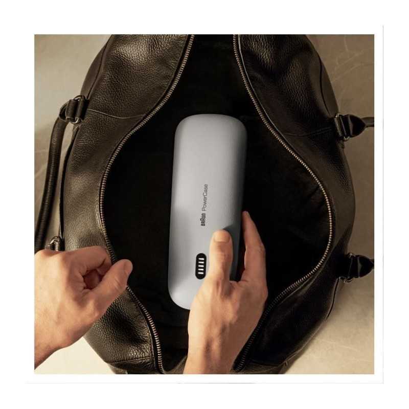 Étui PowerCase de Braun, 1er étui de recharge de rasoir au monde. L'étui offre jusqu'a 50 % d'autonomie en plus, soit jusqu'a 6 semaines de rasage sans fil. Fabriqué a partir de matériaux durables de qualité supérieure et est conçu pour protéger votre rasoir des chocs, des éraflures, de la poussiere et des éclaboussures
