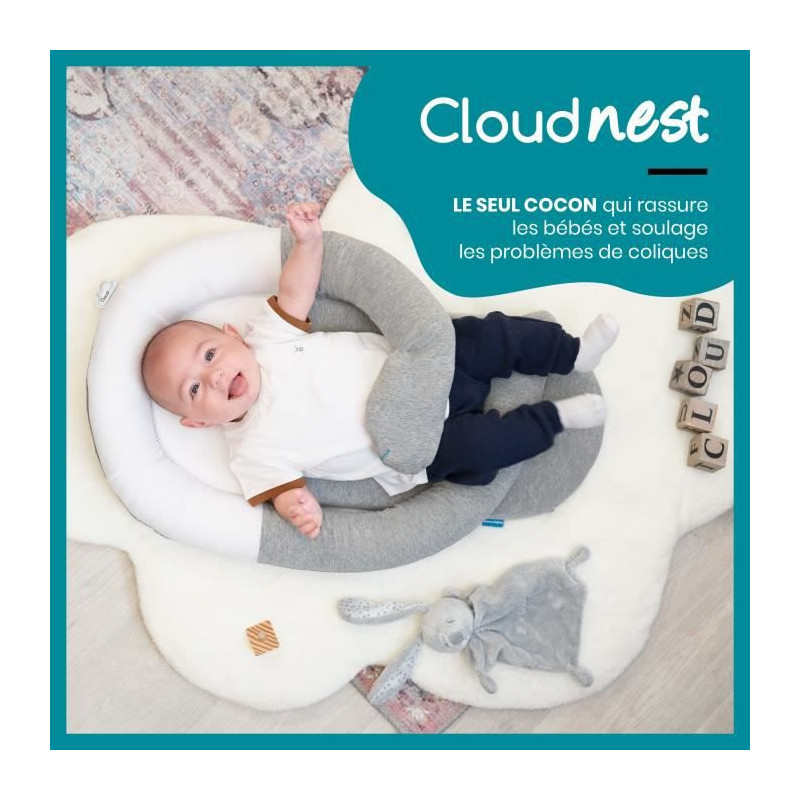Le CloudNest de Babymoov Le seul cocon tout doux, conçu pour rassurer votre bébé et soulager ses coliques Parfois, le bien-etre de votre bébé peut facilement etre perturbé par des petits maux : coliques du nourrisson, régurgitations, nez bouché . Babymoov a développé des produits 100% dédiés au confort pour soulager ces petits maux du quotidien : supports morphologiques, cocons, réducteurs universels.