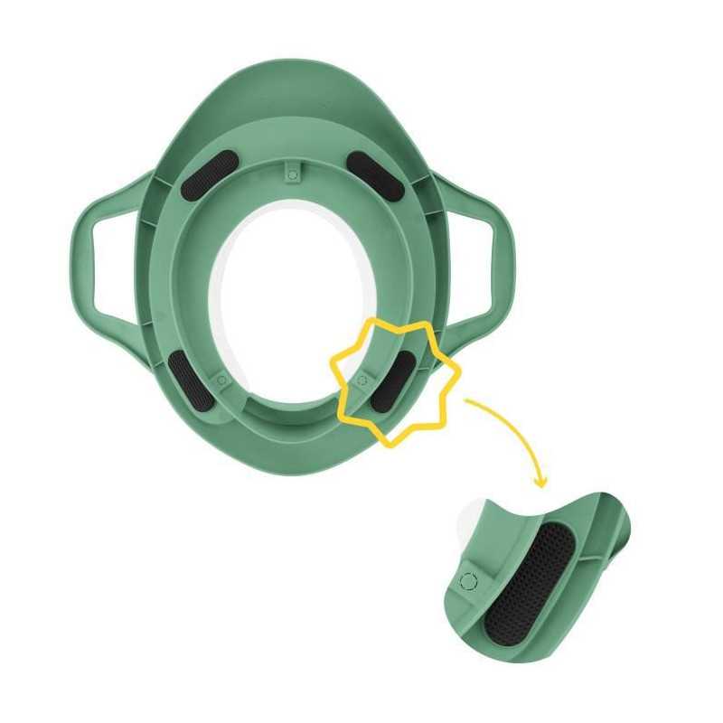 Confortable avec son assise moletonnée amovible - Rassurant de pouvoir se tenir aux 2 poignées hygiéniques - 4 antidérapants en caoutchouc - Tres stable, garantit une sécurité optimale - Compatible avec toutes les formes de cuvettes - Facile a nettoyer a l'eau et au savon