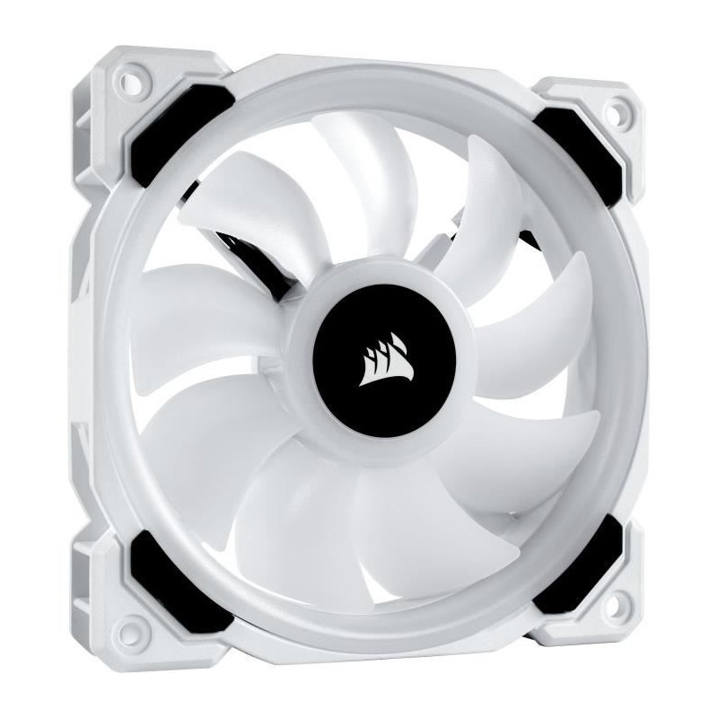 Ventilateur CORSAIR LL120 Pro LED RGB 120mm Blanc - Le ventilateur intelligent CORSAIR LL120 RGB LED PWM 120 mm blanc integre 16 LED RGB configurables individuellement réparties sur deux boucles lumineuses distinctes au sein d'un boîtier blanc éclatant of