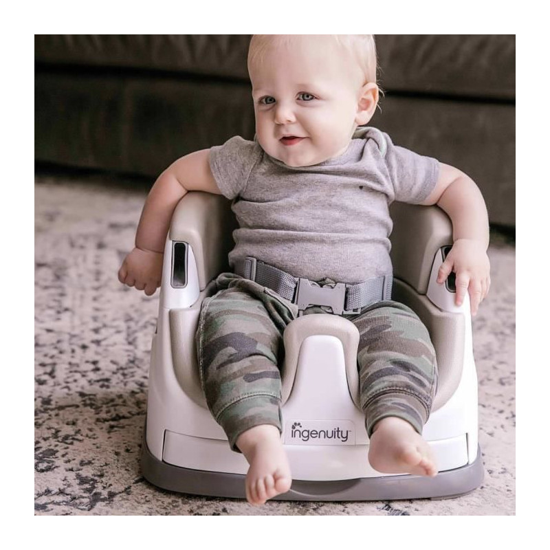 Le rehausseur Ingenuity(TM) se fixe facilement aux chaises pour que bébé puisse participer aux repas en famille. Retirez l'insertion en mousse pour transformer le rehausseur en siege enfant. Le plateau se glisse discretement sous le siege lorsque vous n'en avez plus besoin.
