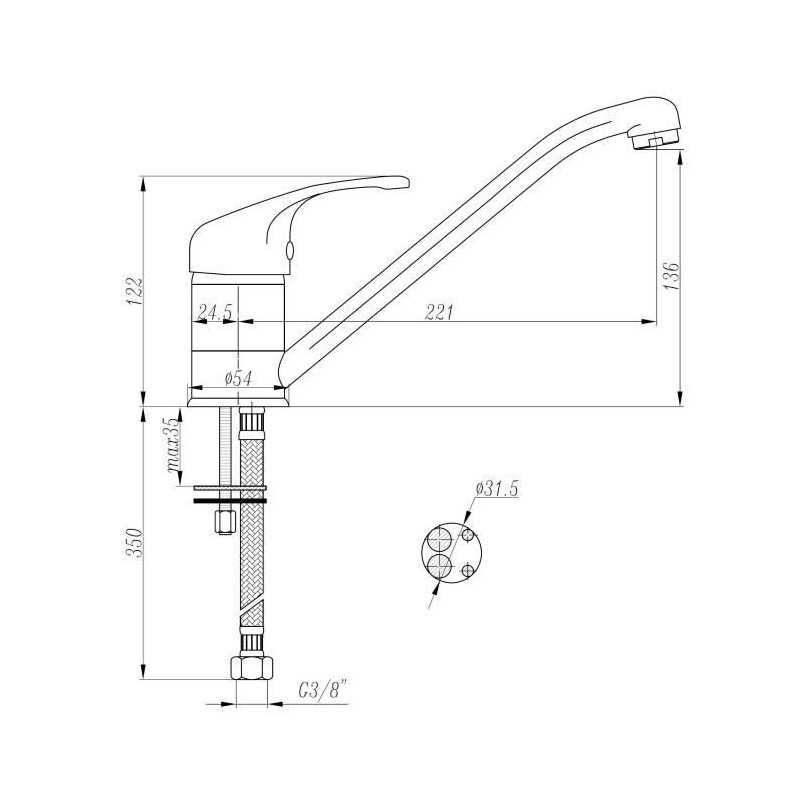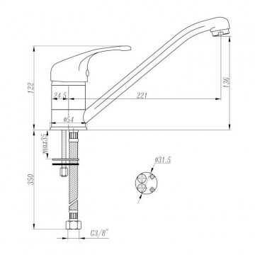 Mitigeur d'évier chrome - Style classique - Cartouche céramique Ø40 mm - Aérateur : 15 L/mn - Poignée : métal - Corps en laiton - Bec : soudé mobile - Embase : Ø 54 mm - Flexibles de raccordement : inox F 3/8 - Certifié NF - Livré avec une clef de serrage - Hauteur sous bec / totale : 13,6 / 15,5 cm - Saillie : 22,1 cm.