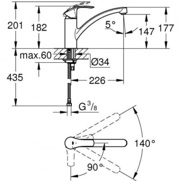 Mitigeur de cuisine GROHE Eurosmart Nouveau, zone de rotation de 140°, GROHE StarLight, GROHE SilkMove ES, mousseur Easy Exchange, systemes d'acheminement d'eau séparés