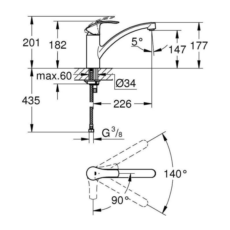 GROHE Mitigeur évier Eurosmart 32221002 - Bec bas - Bec moulé pivotant 140° - Chrome