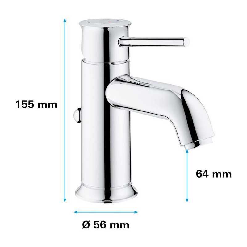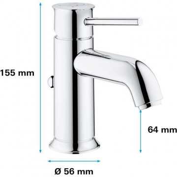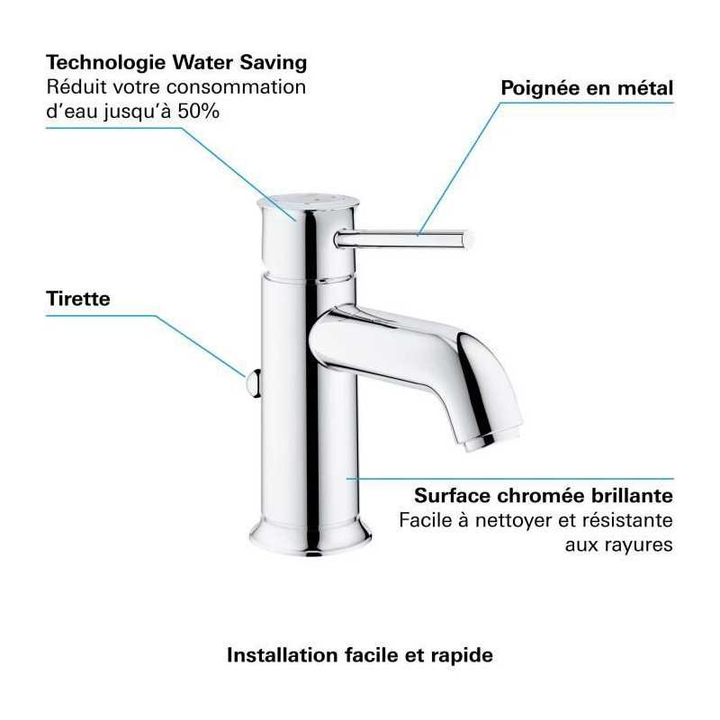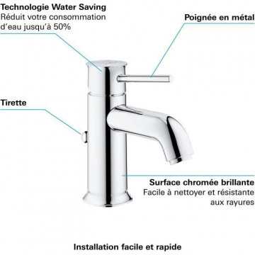 GROHE Robinet lavabo de salle de bains Start Classic, mitigeur avec tirette de vidage, mousseur a économique d'eau, 23810000