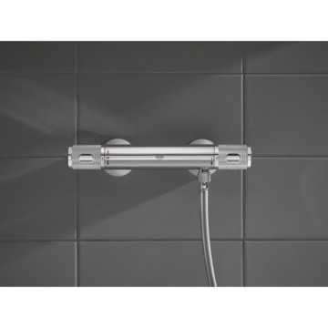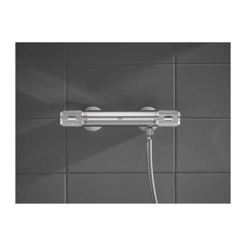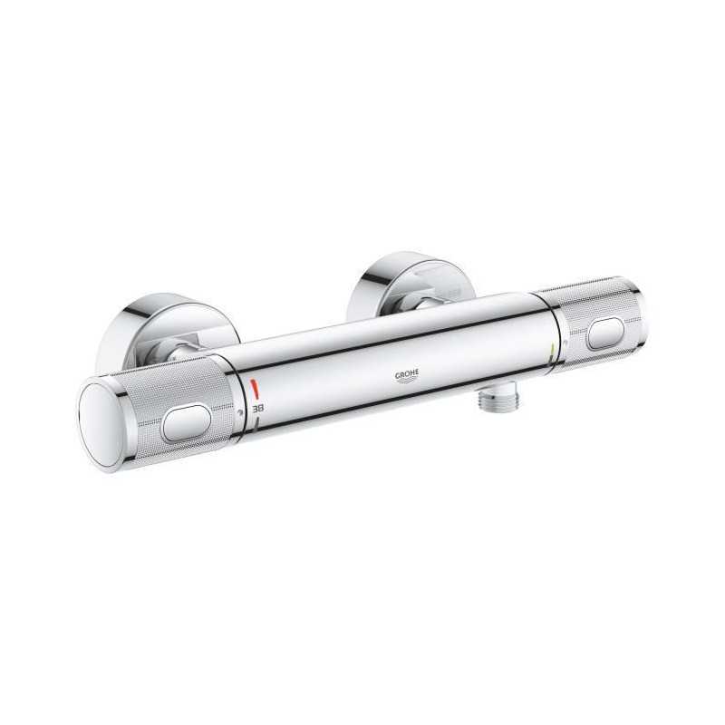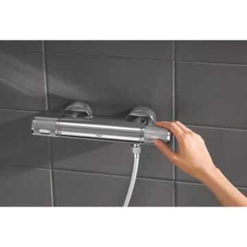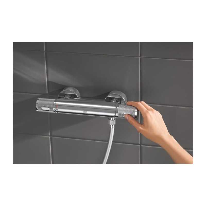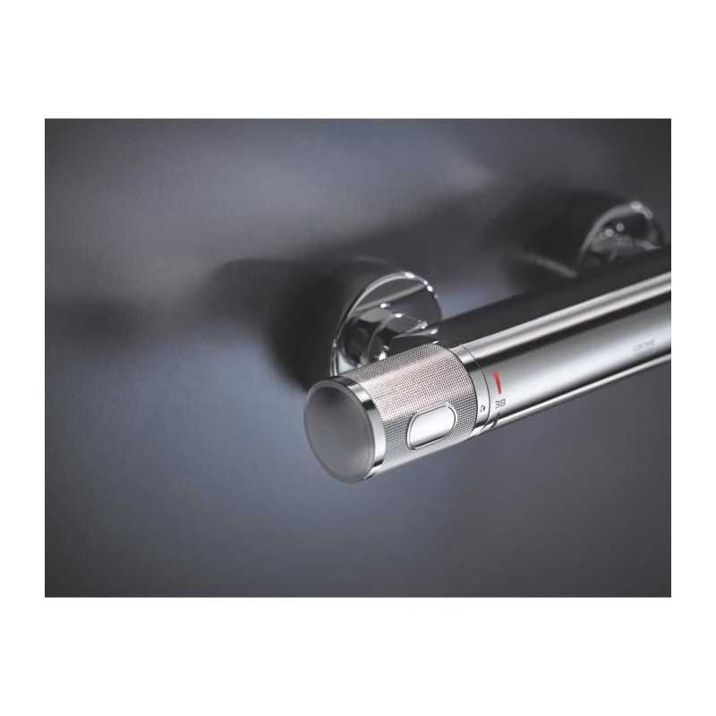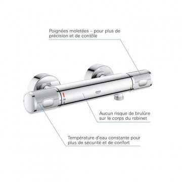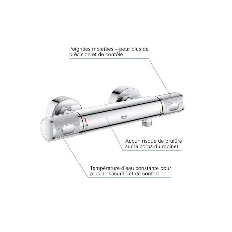 GROHE EcoJoy avec fonction économie d'eau Facile d'entretien grâce a la longue GROHE StarLight Chromoberfl che de débit GROHE EcoButton (touche économique avec butée d'économie réglable individuellement) Contenu de l'emballage : Mitigeur thermostat, matériel de fixation, instructions d'entretien (français non )