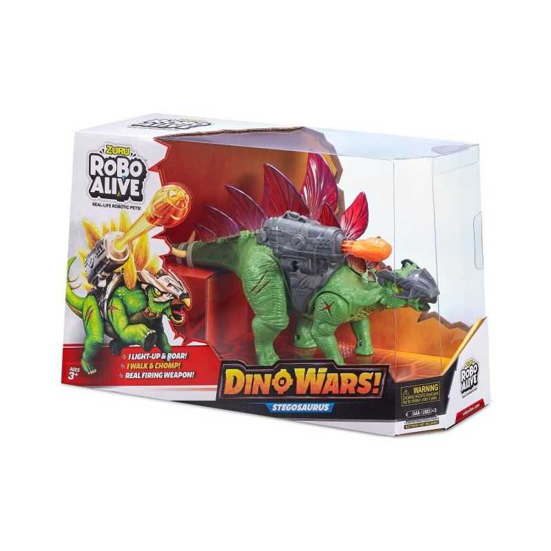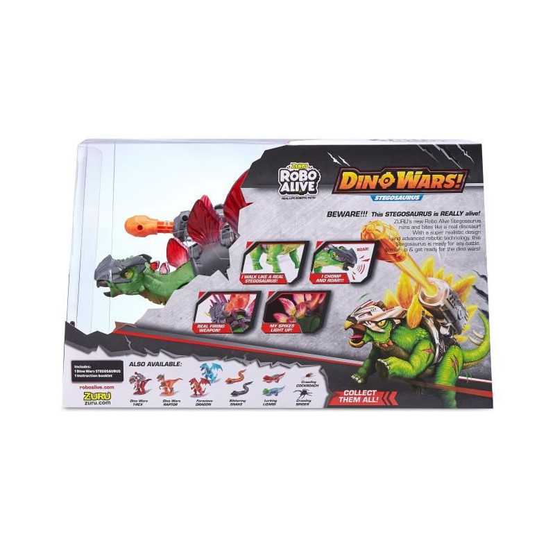 Préparez-vous a une bataille épique de dinosaures ! Le nouveau Robo Alive Dino Wars Stegosaurus de ZURU est construit a l'aide d'une technologie robotique avancée et est équipé de véritables armes a feu ! Avec des rugissements plus vrais que nature et des mouvements de dinosaures réalistes, ce n'est pas un animal de compagnie ordinaire. Enfilez l'armure défensive, chargez le Dino Blaster et battez-vous.