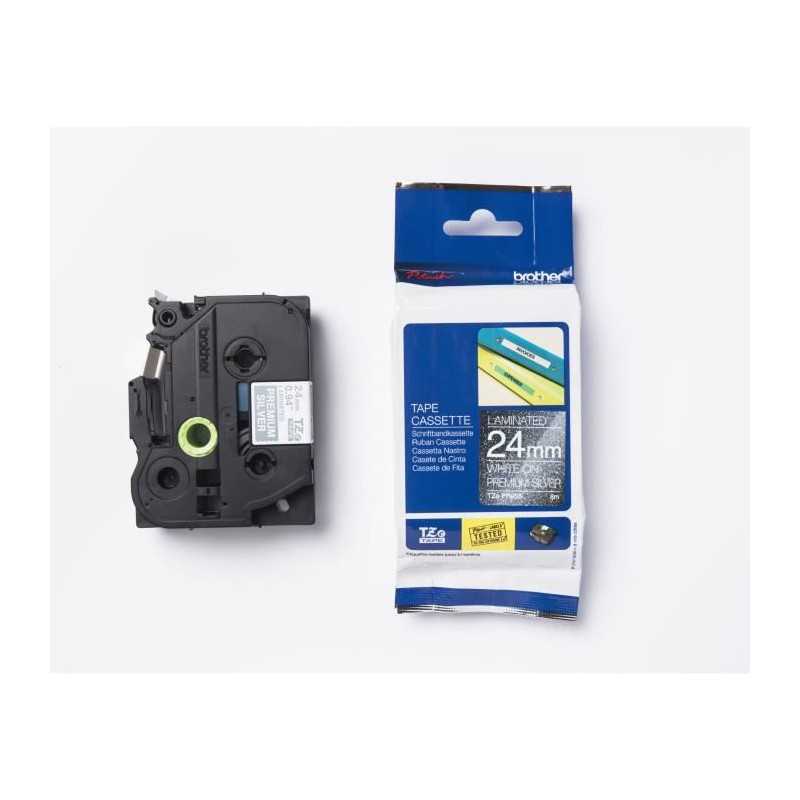 Ruban BROTHER - TZEPR955 - 24mm Blanc sur fond Argent Premium - Qt 1
