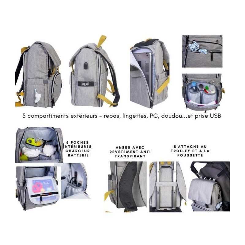 Sac a dos freestyle yellowstone. Tres fonctionnel et bien organisé,espace repas, espace PC, poche lingettes, 6 poches intérieures,port USB, attaches poussette, strap trolley et bretelles ergonomiques anti transpiration, toile déperlante et légere, tapis a langer.