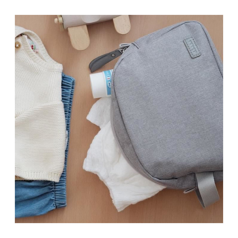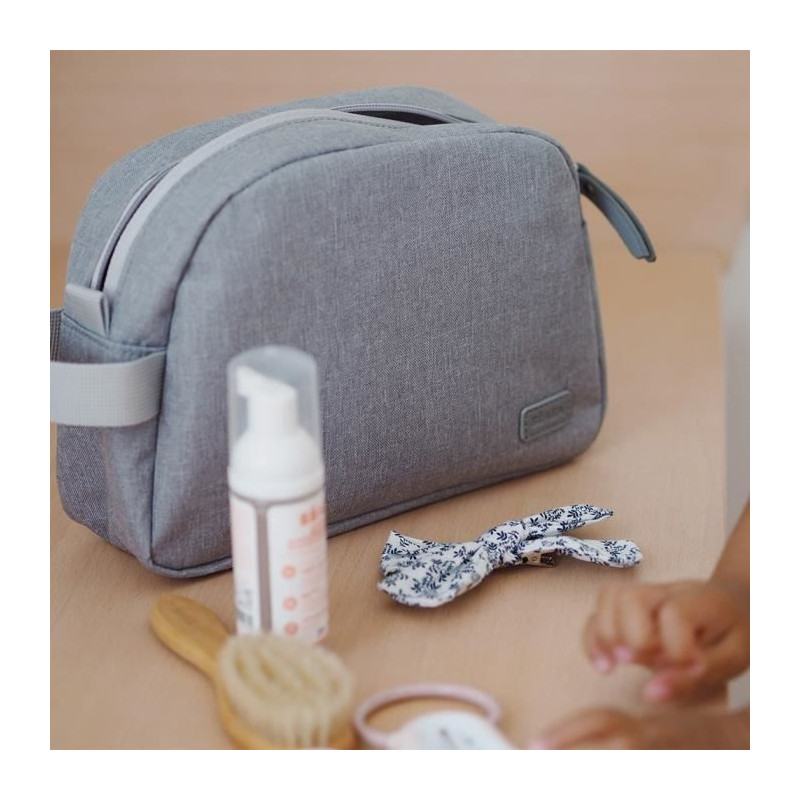 Pratique, permet de ranger le nécessaire de toilette de bébé lors des voyages. Organisée : 2 poches intérieures. Facile a utiliser, poche principale zippée pour un acces rapide. Anse de transport sur le côté, permet de suspendre facilement la trousse. Entretien facile, tissu imperméable lavable a l'éponge.