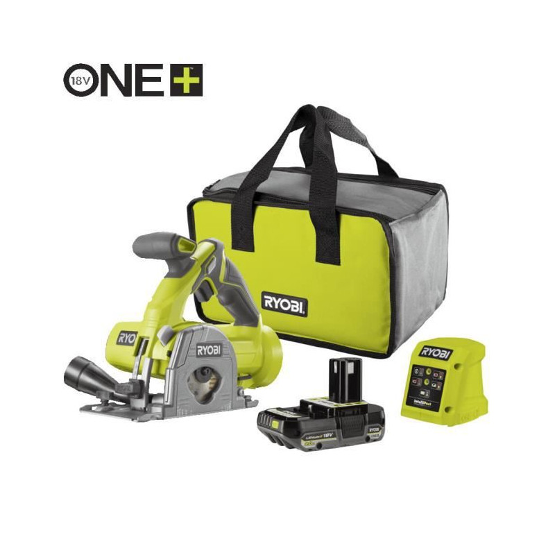 Scie multi-matériaux 18V - diam. 85 mm x 15 mm - 4 250 tr/min - 1 batterie lithium+ 2,0 Ah - chargeur 1,5 A - Livrée en sac de transport avec 1 lame multi-matériaux, 1 lame carrelage, 1 guide parallele et 1 buse d'aspiration