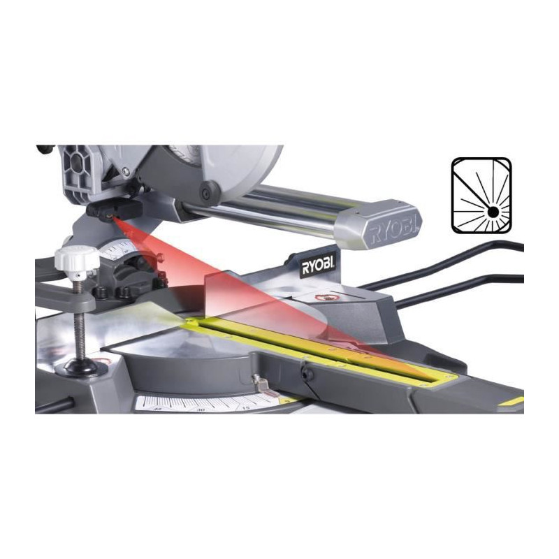 Scie a coupe d'onglets radiale 1 500 W - lame 216 mm 48 dents - capacité 70 x 270 mm a 90°- guidage laser & LED - 15 kg livré avec 1 lame Ø 216 mm 48 dents + 1 sac a poussiere DustTechTM + Extensions droite & gauche + 1 clé de service + 2eme lame 48 dents