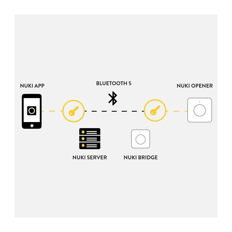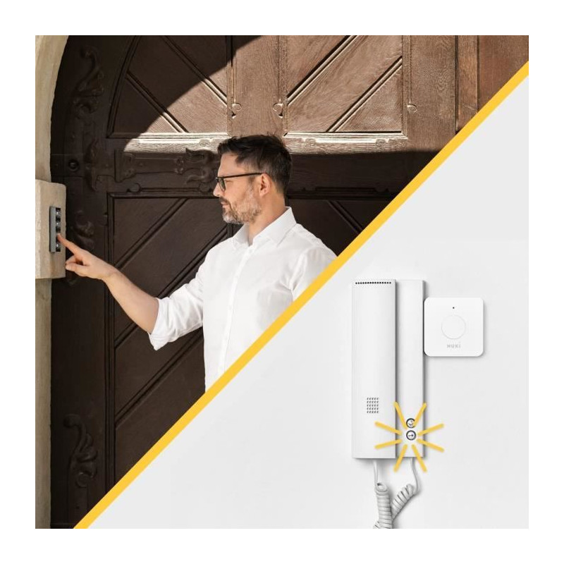 Le Nuki Opener transforme les interphones existants en systemes d'acces intelligents. Combiné avec la Nuki Smart Lock, il offre aux habitants un acces sans aucune clef de la rue jusqu'au logement. Le Nuki Opener commande le buzzer de la porte et est conçu comme une solution d'équipement complémentaire.
