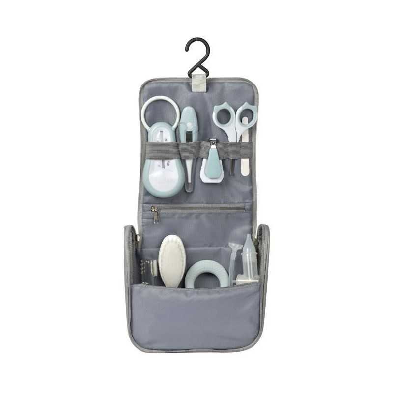 BÉABA Trousse de toilette nomade bébé, 9 accessoires, Green blue