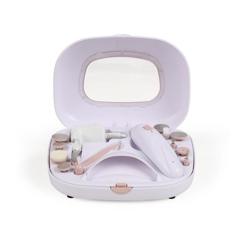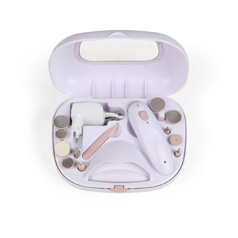 Set manucure et pédicure LIVOO - Vitesses de rotation soufflerie seche-ongles - 12 accessoires - autonomie 3h - Blanc et rose g