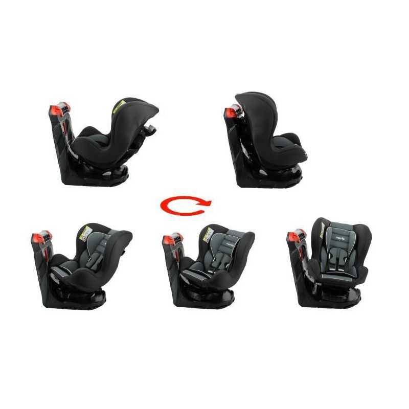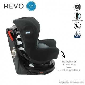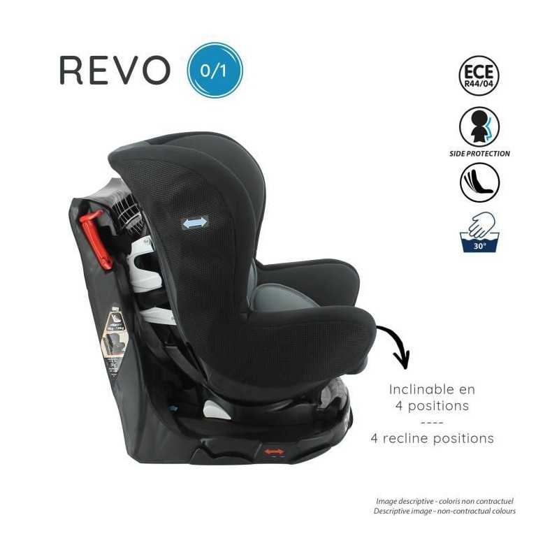 Siege auto pivotant REVO 360° Groupe 0+/1 (0-18kg) Pour les enfants de la naissance a 5 ans Siege auto pivotant 360° groupe 0+/1 qui permet une installation rapide de l'enfant. Le siege REVO se fixe avec la ceinture de sécurité et se positionne dos a la route de 0 a 13kg. Il assure une bonne protection en cas de choc latéral et offre un grand confort a bébé.