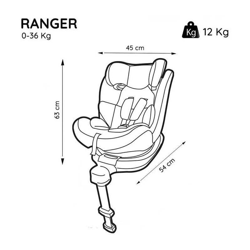 Siege auto RANGER groupe 0/1/2/3 pour les enfants des la naissance jusqu'a 36kg. Pivotant 360° afin de faciliter l'installation de l'enfant. Le siege RANGER se fixe avec le systeme ISOFIX et la jambe de force. Siege auto RANGER confortable, inclinable, qui assure une protection latérale.