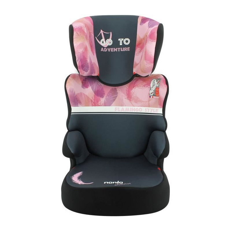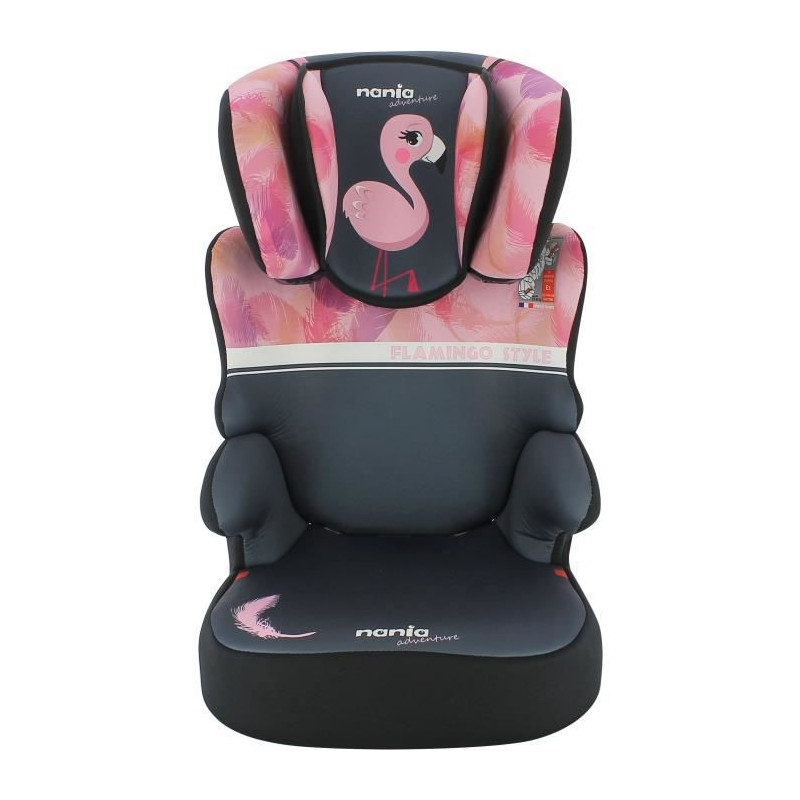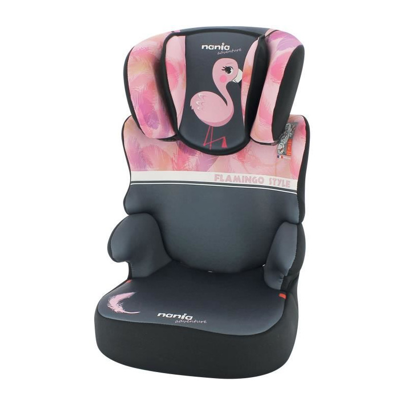 Rehausseur NANIA BEFIX - Groupe 2/3 (15-36 Kg) - Tetiere réglable en hauteur - 4 étoiles ADAC - Flamingo - Fabriqué en France