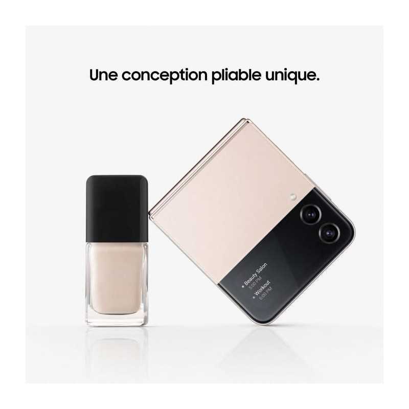 Le Samsung Galaxy Z Flip4 256 Go en couleur Or Rose est un téléphone portable élégant et innovant qui allie performances puissantes et design pliable révolutionnaire.