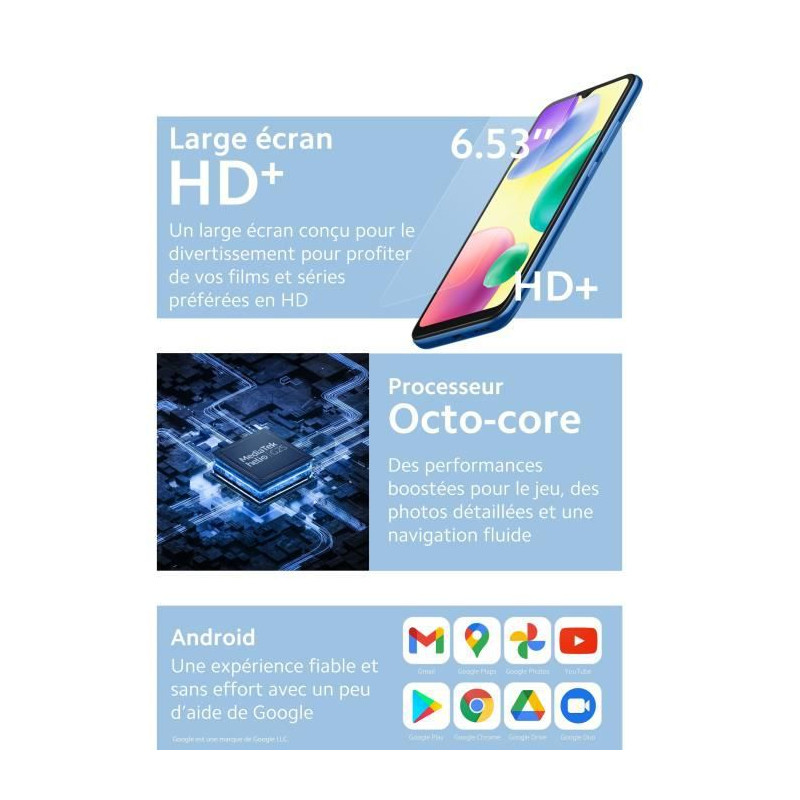 Le Xiaomi Redmi 10A est un téléphone intelligent doté d'un écran de 6,53 pouces et d'une mémoire interne de 32 Go. Il est équipé d'une caméra arrière 13MP et d'une caméra frontale 5MP pour des selfies et des vidéos de qualité. Le téléphone fonctionne sous le système d'exploitation Android 10 et est alimenté par une batterie de 5000 mAh qui offre une autonomie exceptionnelle. Avec sa couleur argent chrome, le Xiaomi Redmi 10A est un appareil élégant et moderne qui offre des performances optimales grâce à son processeur Octa-Core 2GHz. Il dispose également d'un lecteur d'empreintes digitales pour une sécurité supplémentaire et prend en charge les réseaux 4G pour une connexion haut débit.