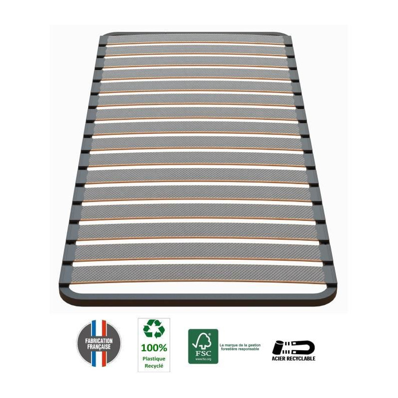 Sommier a lattes 90x190. 16 lattes 83mm de largeur certifiée FSC. 30% de surface couvrante en plus pour une solidité exceptionnelle