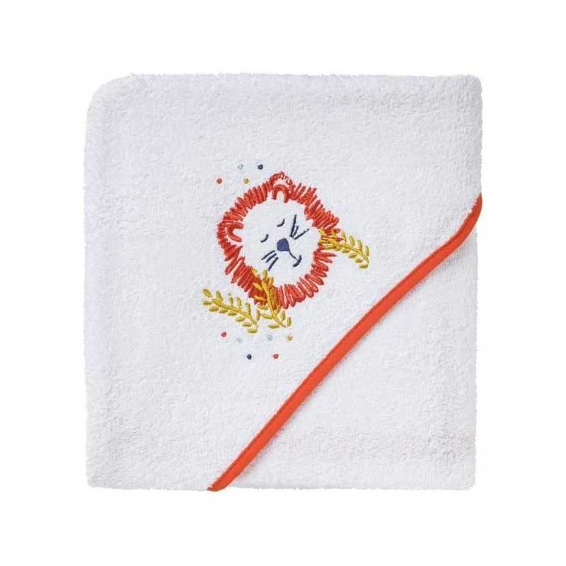 Babycalin Cape de bain - 80 x 80 cm - Broderie lion - Eponge bouclette 340 g/m² 100% coton