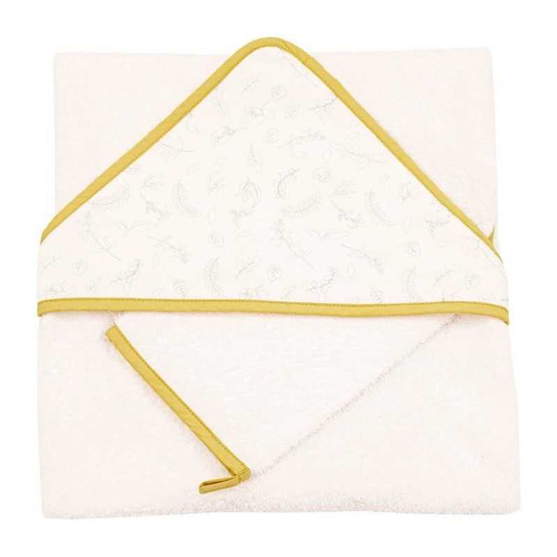 DOMIVA Coffret sortie de bain Leafy Bunny - Eponge 100% Coton - Avec gant - Ecru/Jaune - 75 x 75 cm