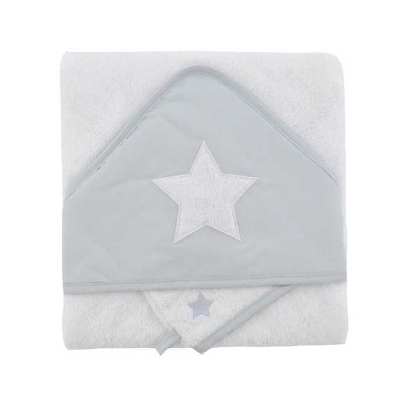 Avec 1 serviette en éponge ultra absorbante 75 x 75 cm avec une capuche brodée pour garder bébé bien au chaud - Plus 1 gant de toilette assorti 15 x 21 cm - En éponge bouclette 100% coton - Mixte - Des la naissance - Livré a l'unité