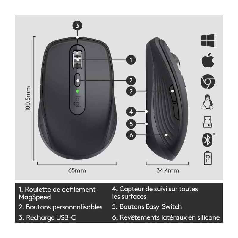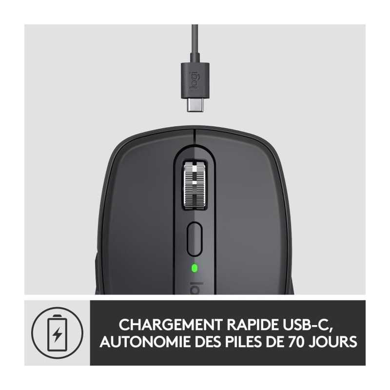 Souris sans fil - Logitech - MX Anywhere 3 - Ergonomique - Bluetooth - USB - Graphite