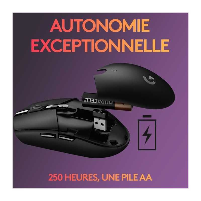 Axée sur les performances, la souris G305 prete a l'emploi et tres abordable est dotée d'un capteur HERO offrant des performances de 12 000 ppp et une connectivité LIGHTSPEED 1 ms sans fil.