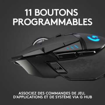 Jouez plus rapidement et plus précisément grâce a la souris G502 LIGHTSPEED. Découvrez la souris gaming emblématique de Logitech G, désormais dotée de la technologie sans fil ultrarapide LIGHTSPEED, de composants internes repensés et de la compatibilité POWERPLAY.