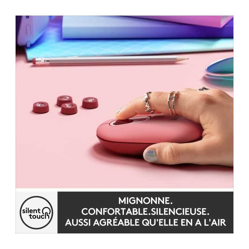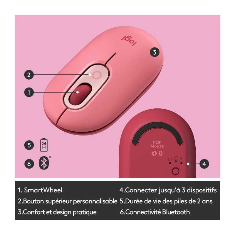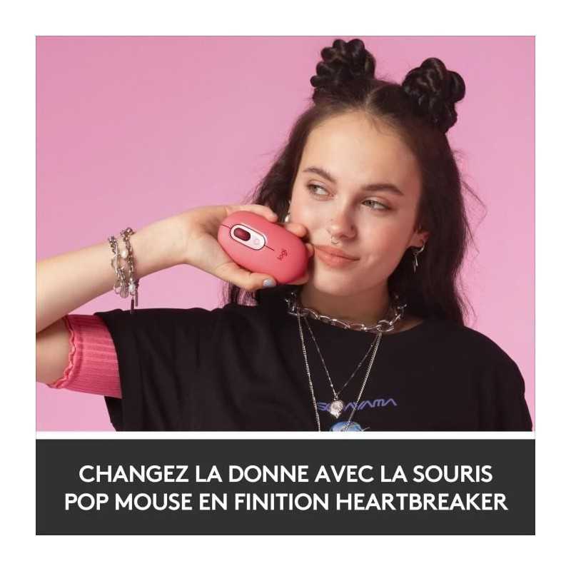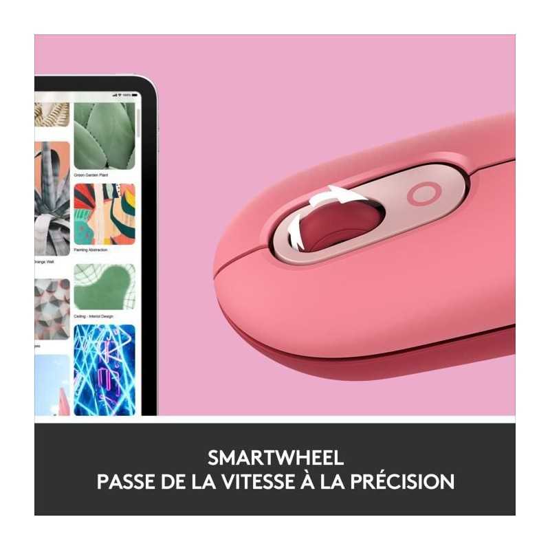 Souris Sans Fil Logitech POP Mouse avec Emojis Personnalisables, Bluetooth, USB, Multidispositifs - Rose